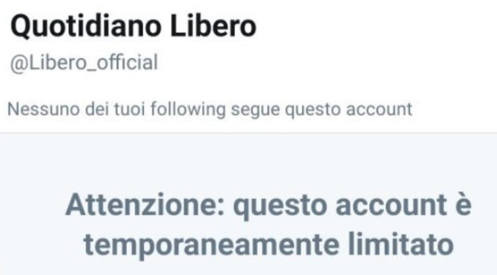 Dopo 12 ore di "ban temporaneo" #Liberoquotidiano torna a twittare. Da #Twitter nessuna spiegazione ufficiale: le ipotesi https://t.co/4jjRtM6iPH pic.twitter.com/4Bx4YY4g0q