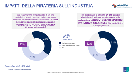 “Nella rilevazione di quest’anno abbiamo approfondito il tema della percezione del danno da parte dei pirati ed emerge chiaramente che chi pirata non è pienamente consapevole del danno che sta arrecando all’industria audiovisiva e soprattutto ai lavoratori che ne fanno parte”, ha evidenziato Nando Pagnoncelli, presidente Ipsos Italia.