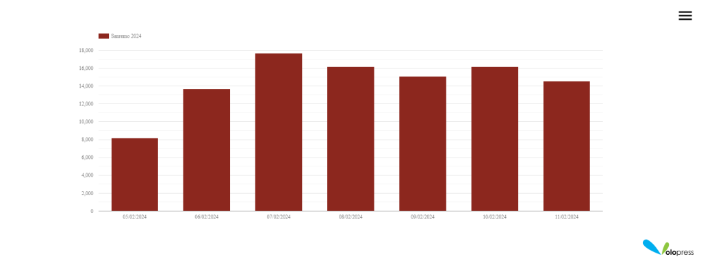Come abbiamo visto, il 2024 è stato un assoluto successo per il Festival di Sanremo, con più di 99mila citazioni. Non fa una piega, se si pensa che è stato anche l’anno con più share: 74% per l’ultima puntata contro, ad esempio, il 66,5% dell’edizione precedente.