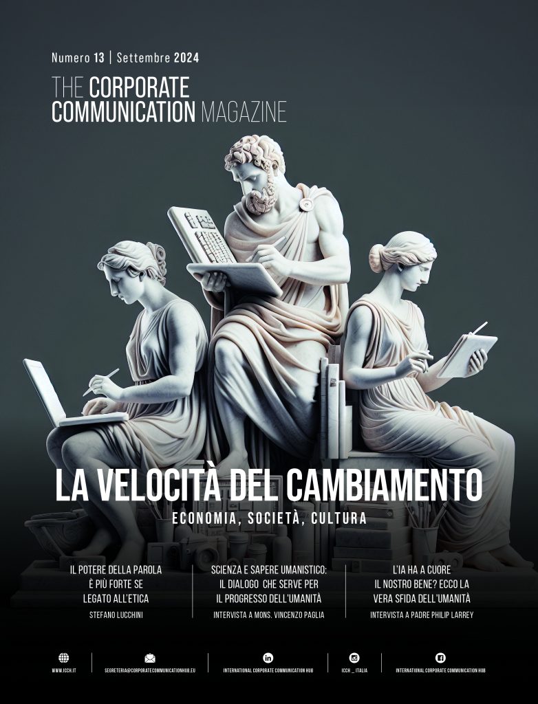 E su questo scenario è stato organizzato il nuovo numero, il tredicesimo, di ‘The Corporate Communication Magazine‘, edito da ICCH dedicato appunto a ‘La velocità del cambiamento’, un tema centrale per il mondo della comunicazione di cui ICCH è una rappresentanza di alto livello, concentrando al proprio interno i manager più rilevanti del sistema delle relazioni pubbliche e istituzionali. Per condividere il pensiero su cui si sviluppa il magazine, Stefano Lucchini, presidente advisory board del ICCH, ha promosso un dibattito con rappresentanti di esperienze diverse per parlare di come la velocità del cambiamento sta diventando ‘travolgente ‘ con l’avvento dell’Intelligenza artificiale. L’incontro in presenza, ma anche con molti ospiti collegati dall’estero, si è tenuto il 9 dicembre presso la Fondazione Eni Enrico Mattei a Milano.