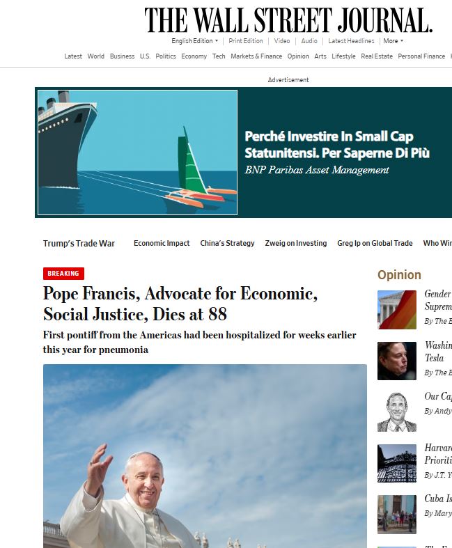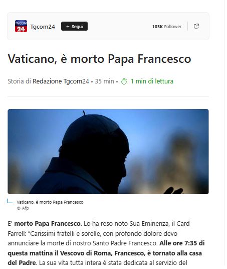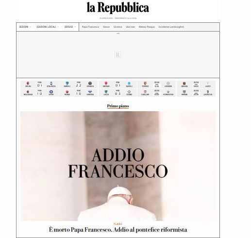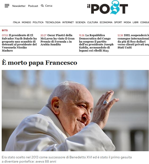 Dopo l’annuncio del cardinale Kevin Farrell, sono stati aggiornati i siti di tutte le testate giornalistiche del mondo e avviate, sulla televisione italiana, trasmissioni che stanno approfondendo, oltre alla notizia della morte di Bergoglio, la storia del suo pontificato.