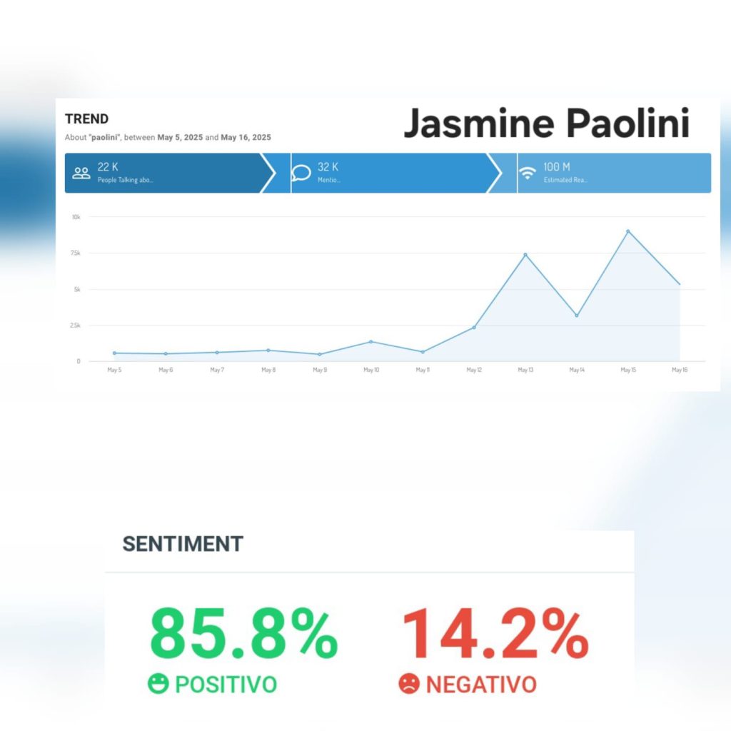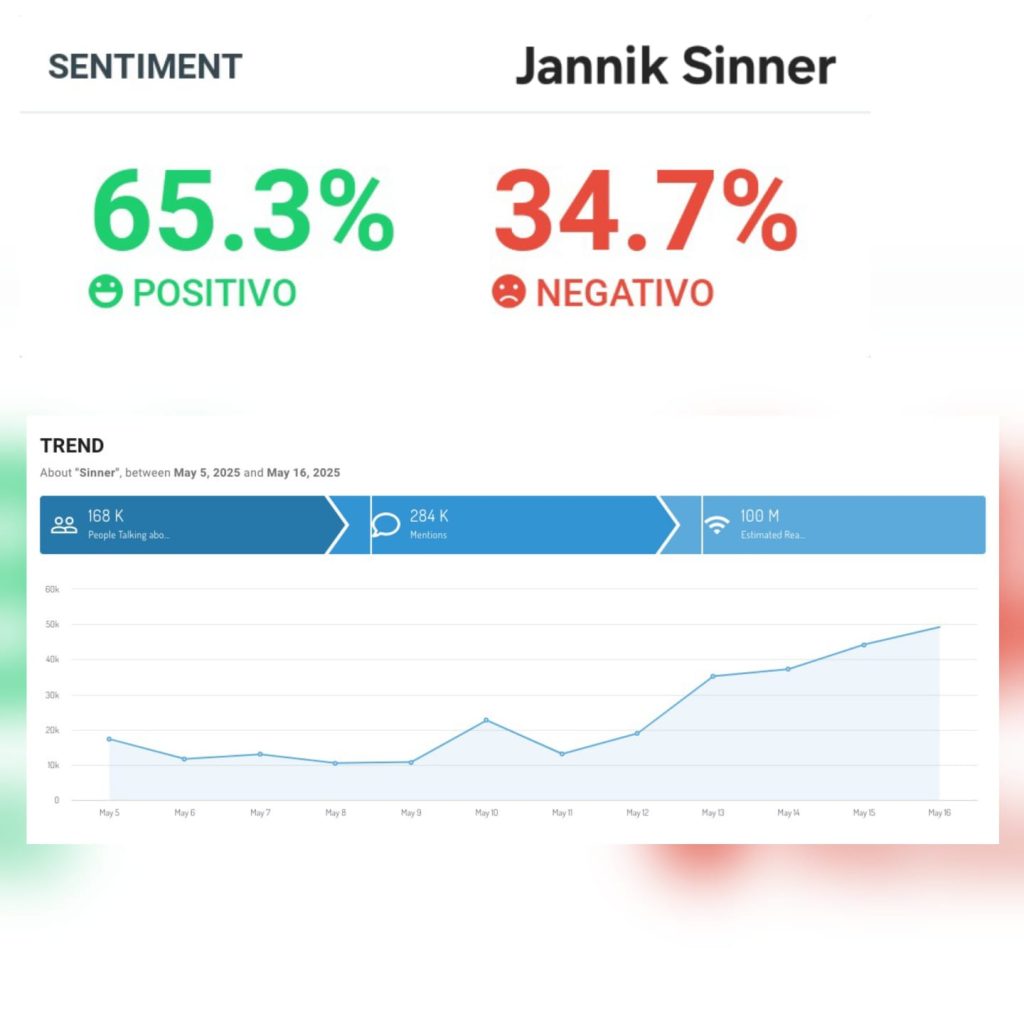 Il sentiment complessivo di Jasmine Paolini è positivo per l’85,8%, mentre quello raccolto da Jannik Sinner si ferma a una percentuale di apprezzamento drl 64,3%. Ma, nel caso di Sinner questo valore è legato anche al totale delle menzioni complessive che sono 8 volte quelle della Paolini. In ogni caso, entrambi i campioni italiani in questi 10 giorni hanno raggiunto online una copertura di oltre 100 milioni di utenti.